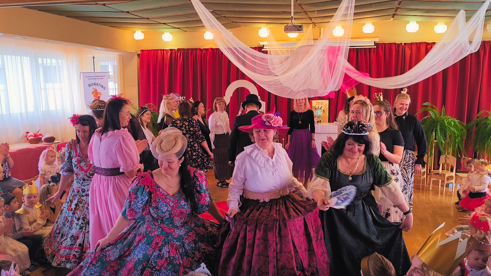 PII “Buratino” notika “Princešu un prinču balle”. Ikviens – no mazākā līdz lielākam – varēja iejusties karaļvalsts pavalstnieku tēlos. Vispirms noskaidrojām, ka īstām princesēm un prinčiem jābūt ne tikai skaisti tērptiem, bet arī pieklājīgiem, ar staltu stāju un – pats galvenais – ar siltu un izpalīdzīgu sirsniņu.