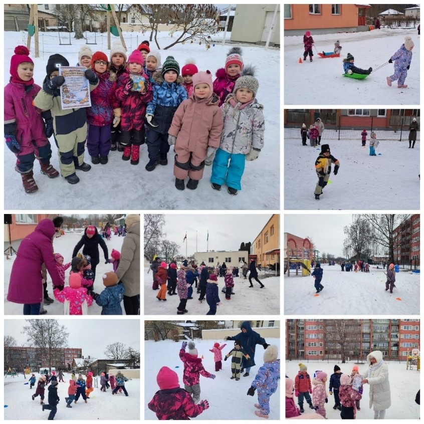 6. februārī, mūsu pirmsskolā valdīja īpaši jautra un sirsnīga noskaņa – kopā ar bērniem atzīmējām Meteņdienu. Pie mums viesojās Meteņmāte un Ziemas māte, kuras bērnus iepazīstināja ar Meteņdienas tradīcijām, ticējumiem. Sarunu par svētku nozīmi papildināja daudz priecīgu rotaļu un kustību aktivitāšu. Tā kā Ekoskolas tēma šogad ir transports, arī Meteņdienas uzdevumi bija ar radošu ievirzi – bērni mācījās lidot ar slotu, jāt ar zirgu, vizināties ar ragavām un piedalījās spēlē “Sasaldētie”, kur īpašs uzsvars tika likts uz veiklām kājām un ātru reakciju. Protams, neizpalika arī muzikāla aktivitāte – jautra deja ar slotu, kas sagādāja daudz smieklu un prieka. Kad visas aktivitātes bija izdejotas un izskrietas, Ziemas māte atvadījās no bērniem, bet bērni skaļi un no sirds sauca: “Pavasari, nāc!” – lai ātrāk atnāk siltums, saule un putnu dziesmas. Katru grupu noslēgumā priecēja arī pateicības raksts un baranciņas par aktīvu piedalīšanos Meteņdienas svinībās. Paldies visiem par smaidiem, kustību prieku un silto kopā būšanu! Lai pavasaris tiešām dzird mūsu saucienu un drīz klauvē pie durvīm.
