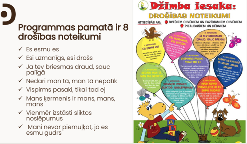 Pie mums šo programmu apgūst sešgadīgās grupas bērni kopā ar mūsu Džimbas aģenti – pirmsskolas izglītības skolotāju Baibu Ozolu.