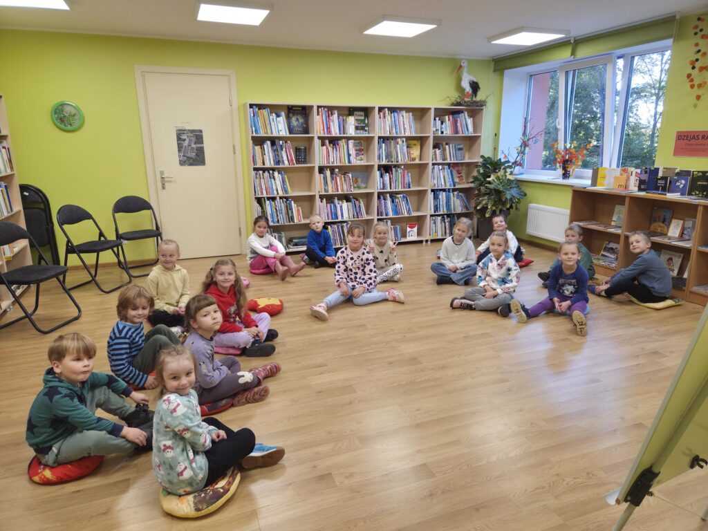 Dzejas dienu noskaņās, viesojāmies Mazsalacas pilsētas bibliotēkā, kur klausījāmies jautrus un interesantus dzejoļus – Heli Lāksonenas “Jūrs cuciņ pārvertips”, Ilo Pikova “Tuk-tuk”, Juliāna Tuvima “Dārzeņi” un Marta Pujāta “Es redzēju, kā mana mazā māsa…”. Pēc dzirdētajiem dzejoļiem bērni ļāvās radošumam – tapa krāsains zīmējums par jūrascūciņas pārvērtībām, kā arī skaista glezna no dažādiem dabas materiāliem.