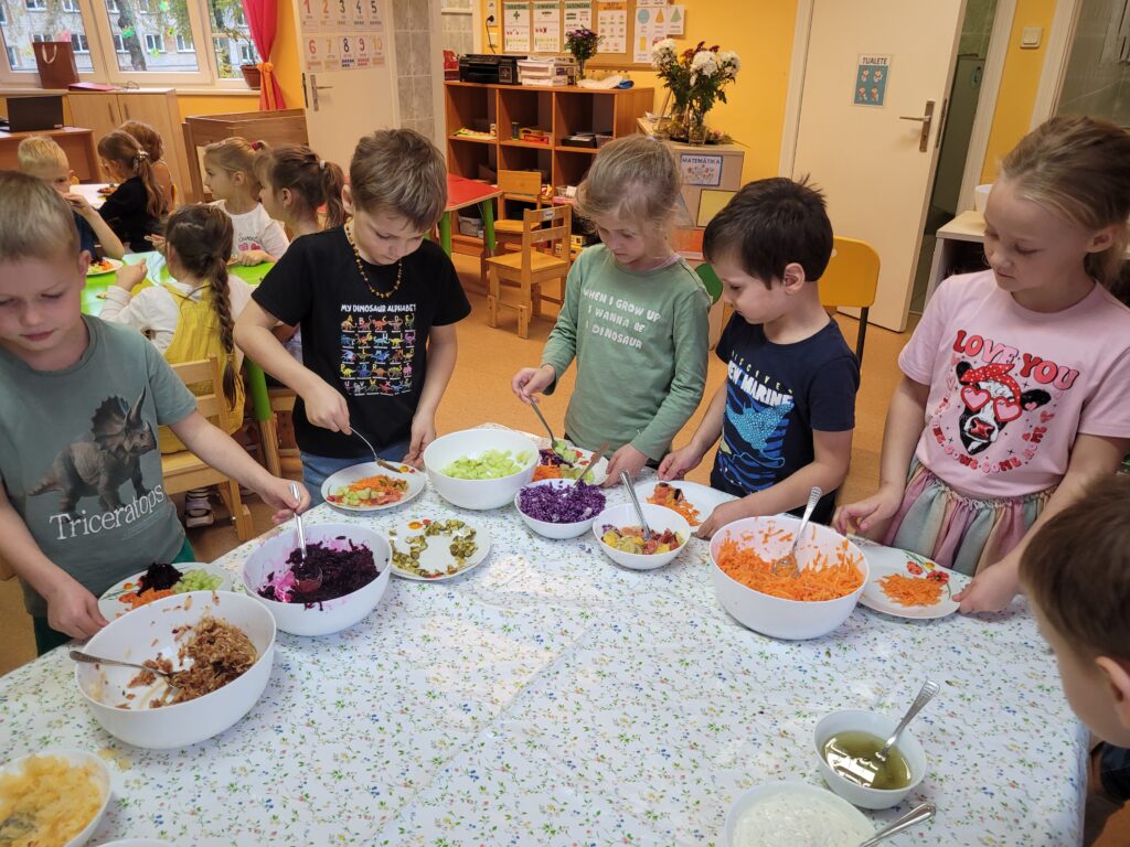 Mizojām, rīvējām, griezām un sajaucām visdažādākos dārzeņus. Katrs varēja izveidot savus īpašos salātus, izvēloties iecienītākos produktus.
