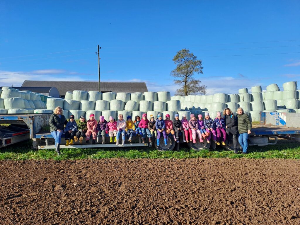 Grupas “Sprīdīši” bērni devās mācību ekskursijā uz z/s “Kalves”, kurā saimnieko Mārča vecāki. Tik daudz pozitīvu emociju, samīļojot gotiņas un mazos teliņus. Ekskluzīva iespēja iekāpt kombainā NEW HOLLAND un redzēt progresīvu jauno tehnoloģiju, kā darbojas graudu kaltes un garšo kviešu graudi un kaņepju sēklas.