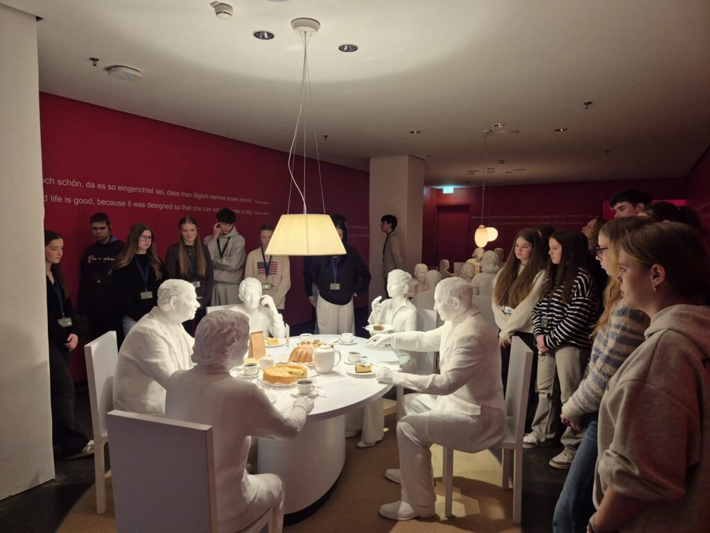 Viesošanās laikā mums bija tikšanās ar pilsētas mēri, viņa bija draudzīga un ļoti daudz izstāstīja par sadarbību ar Rūjienu un atbildēja uz mūsu uzdotajiem jautājumiem, kurus bijām sagatavojuši kopā ar vācu skolēniem.
