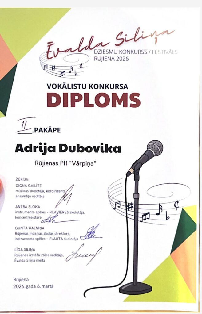 Šogad, 6.martā, Ēvalda Siliņa dienas koncertā no PII Vārpiņas piedalījās ADRIJA DUBOVIKA un JĀNIS ELMIS.