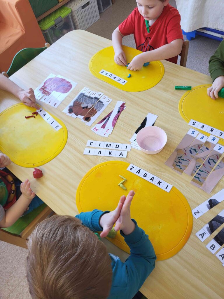 Ikdienā bērnudārzā runas attīstība notiek ne tikai logopēda nodarbībās, bet arī rotaļās, sarunās, dziesmās, dzejoļos un dažādās valodas spēlēs. Bērni mācās klausīties, stāstīt, uzdot jautājumus un dalīties savās domās.
