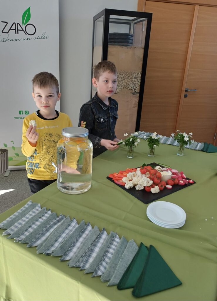 Pasākumā bērni noskatījās leļļu teātra izrādi “Ražas ritmi”, kas stāstīja par dārzeņu pozitīvo ietekmi uz veselību un vitamīniem. Paralēli izrādei pedagogi piedalījās upcycle darbnīcā.