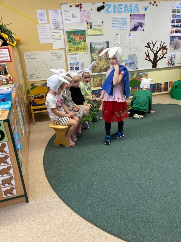 “Cālīša” grupas bērni februārī iejutās aktieru lomās, izspēlējot dažādas latviešu tautas pasakas, kā piemēram, “Kukulītis”, “Zaķīšu pirtiņa”.