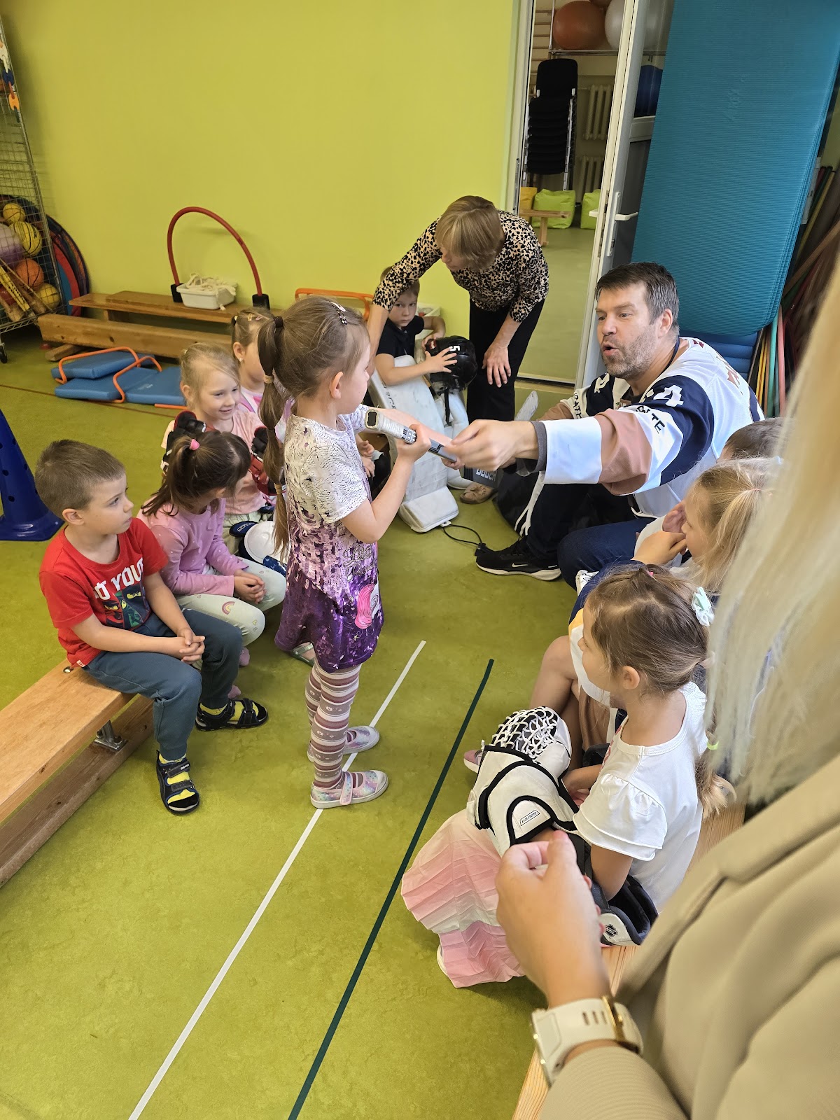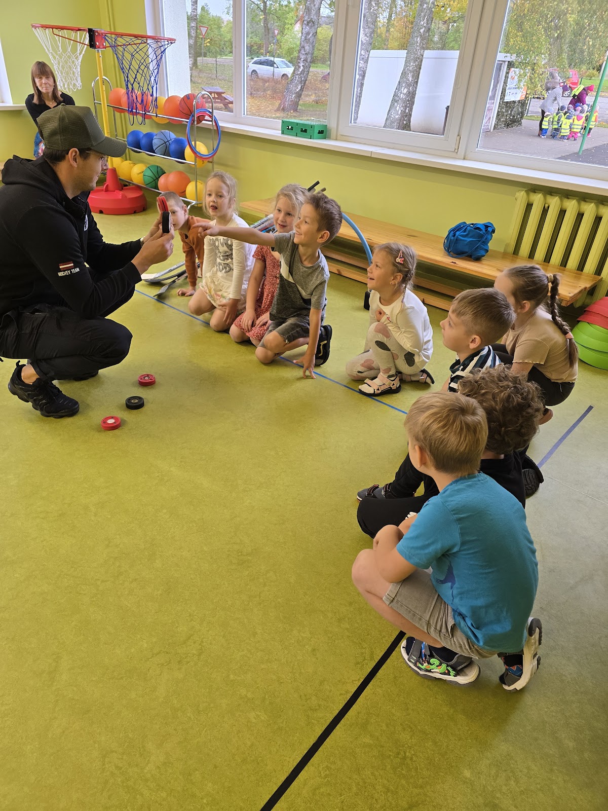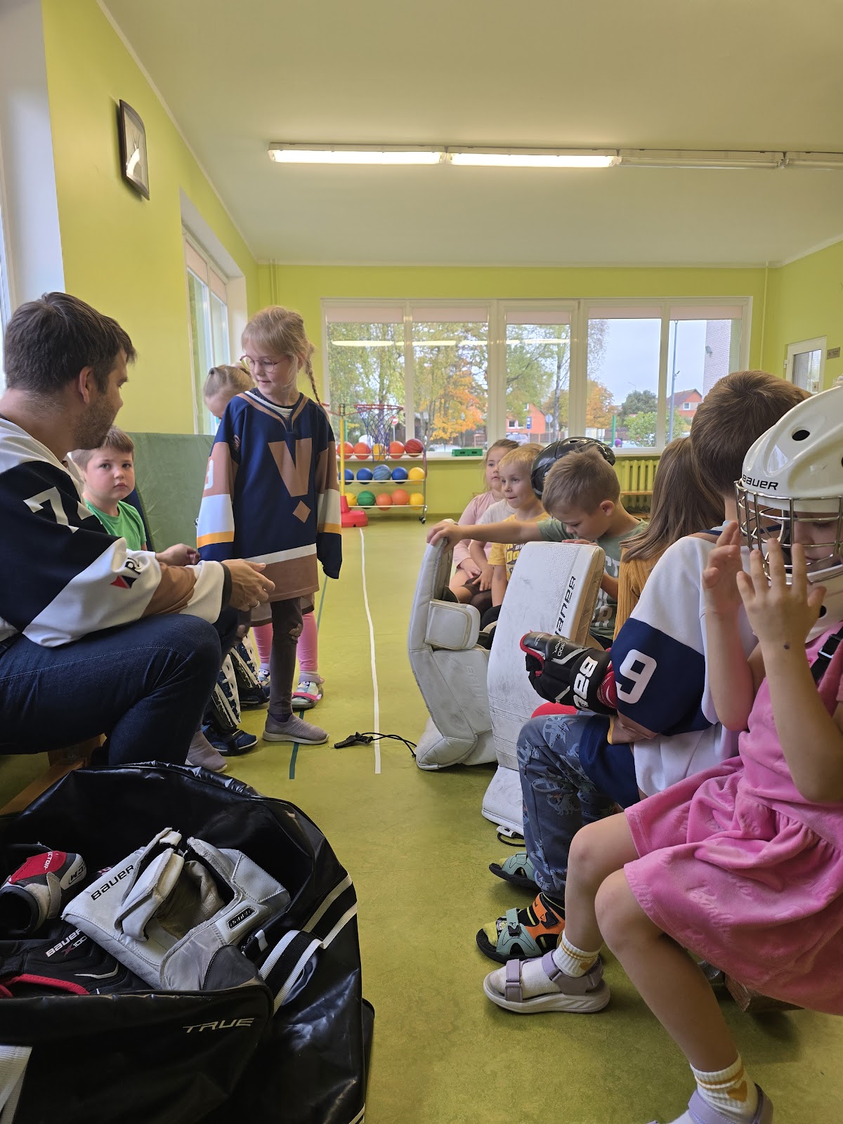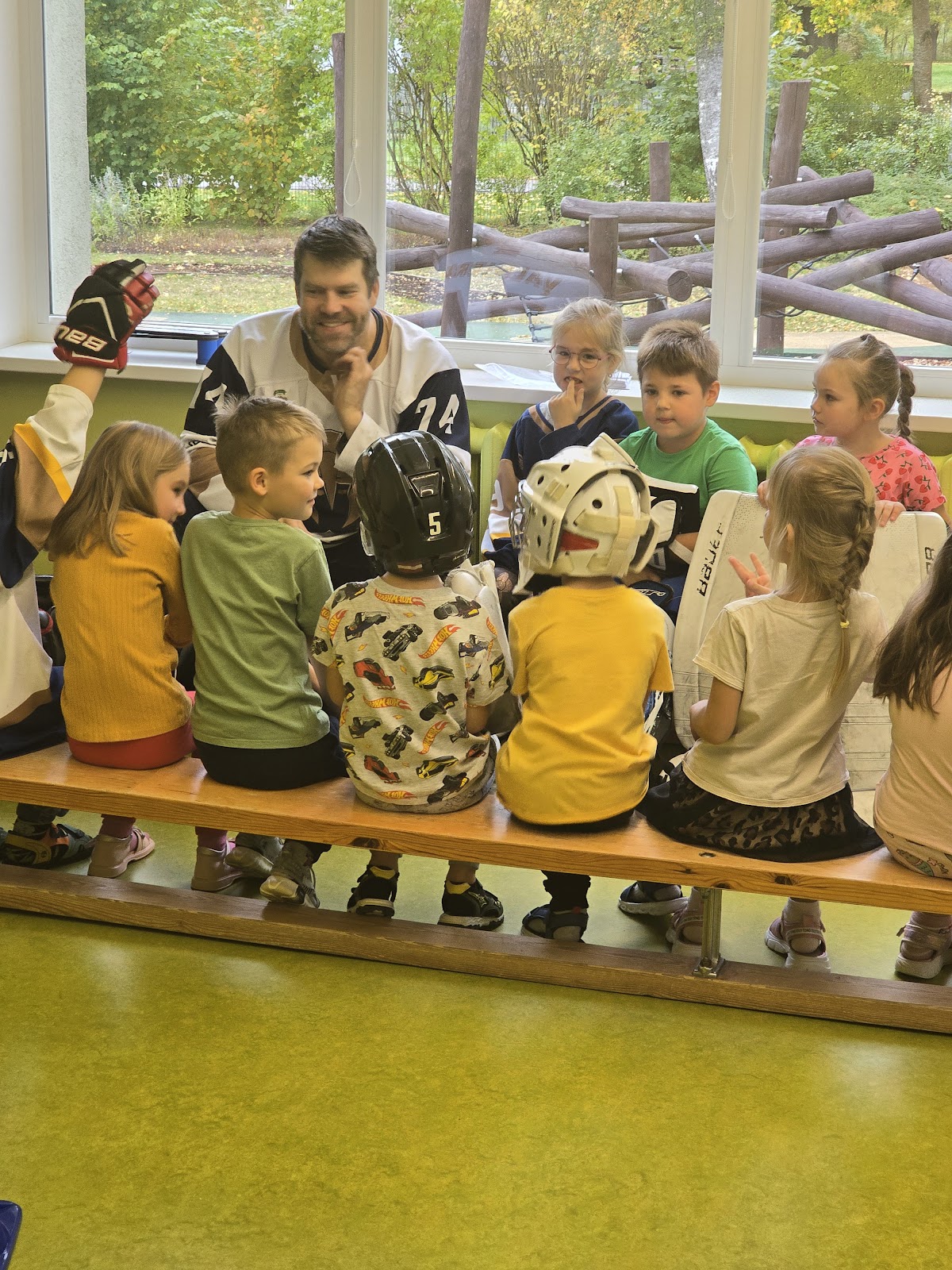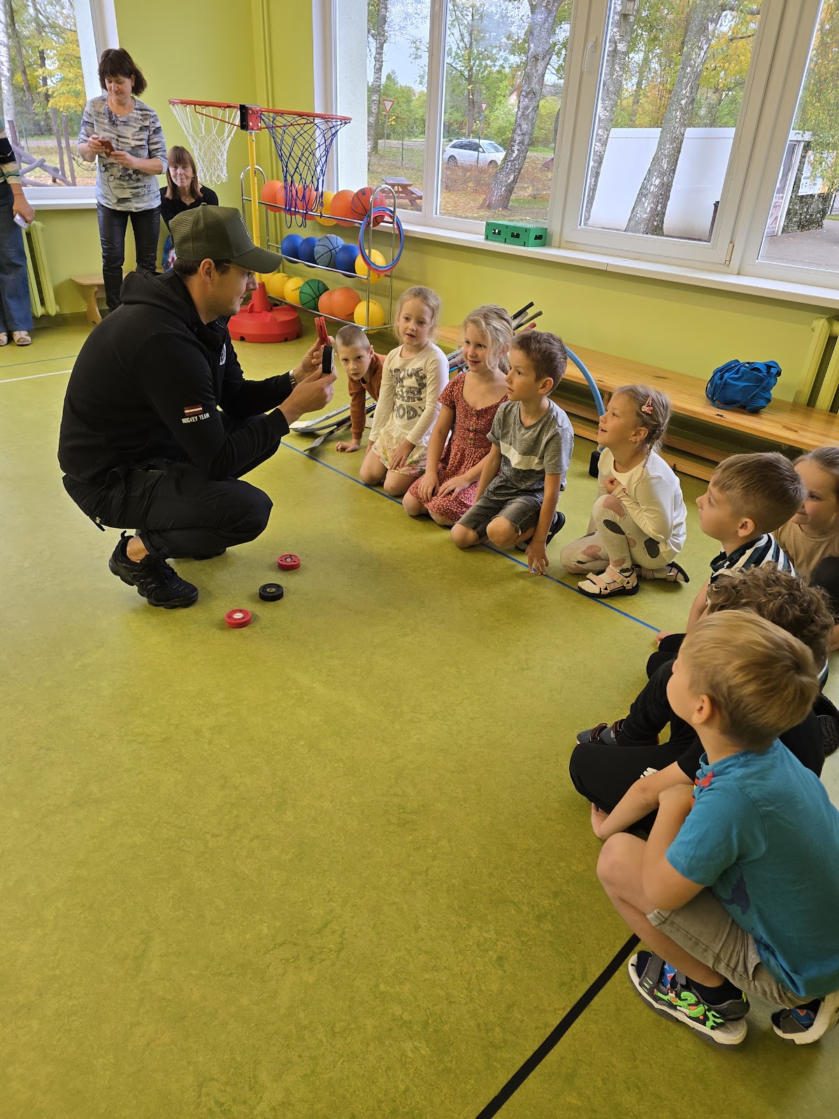 13.oktobrī, 2025, pie mums ciemojas Valmieras sporta skolas hokeja treneri Jānis Sprukts un Lauris Žagariņš. Treneri “Kamenīšu” un “Spārīšu” grupas bērniem pastāstīja kas ir hokejs, parādīja formas tērpu un aprīkojumu. Bērniem bija iespēja iemest vārtus – tie, kuri trāpīja tika pie īstas hokeja ripas.