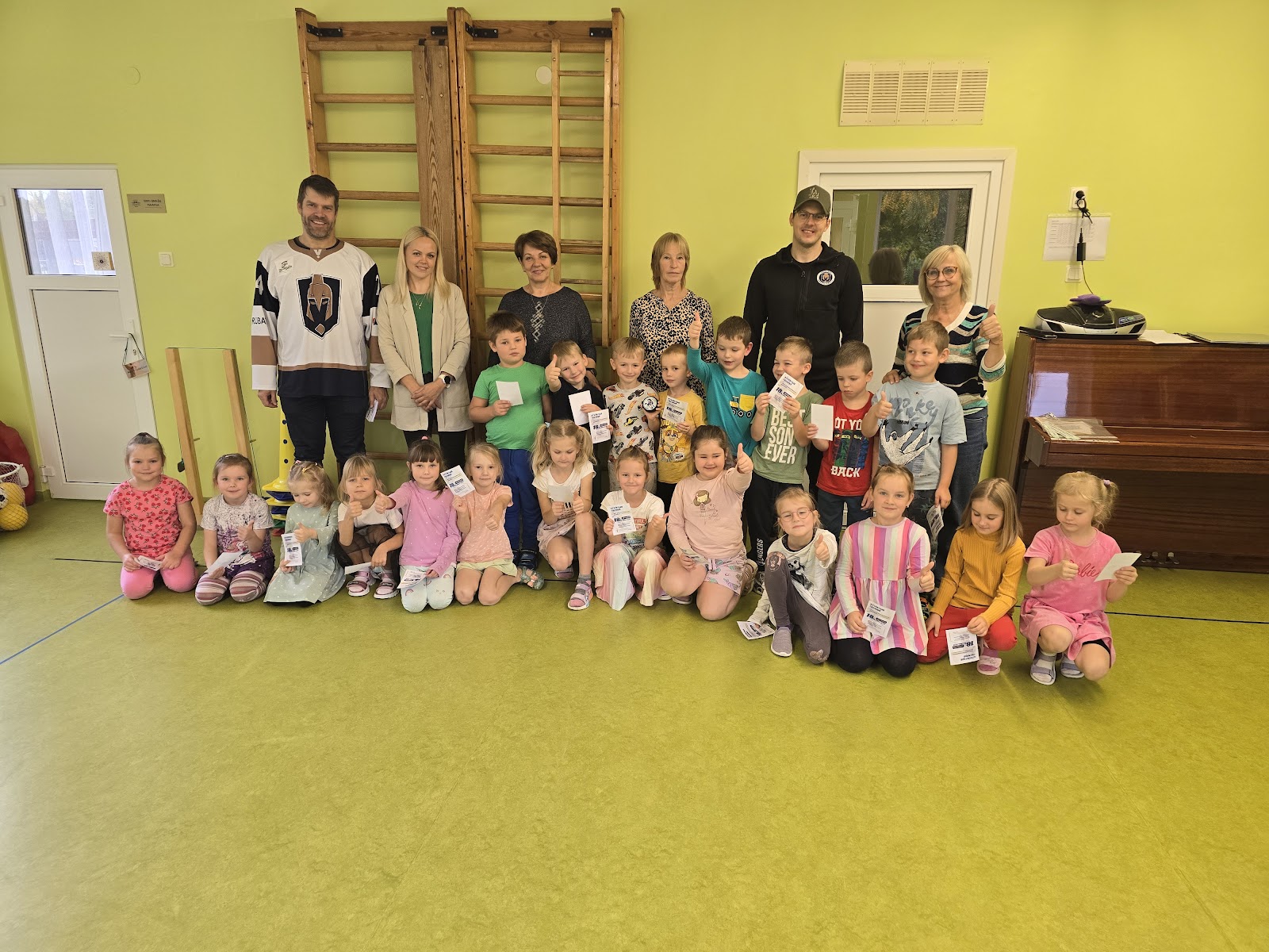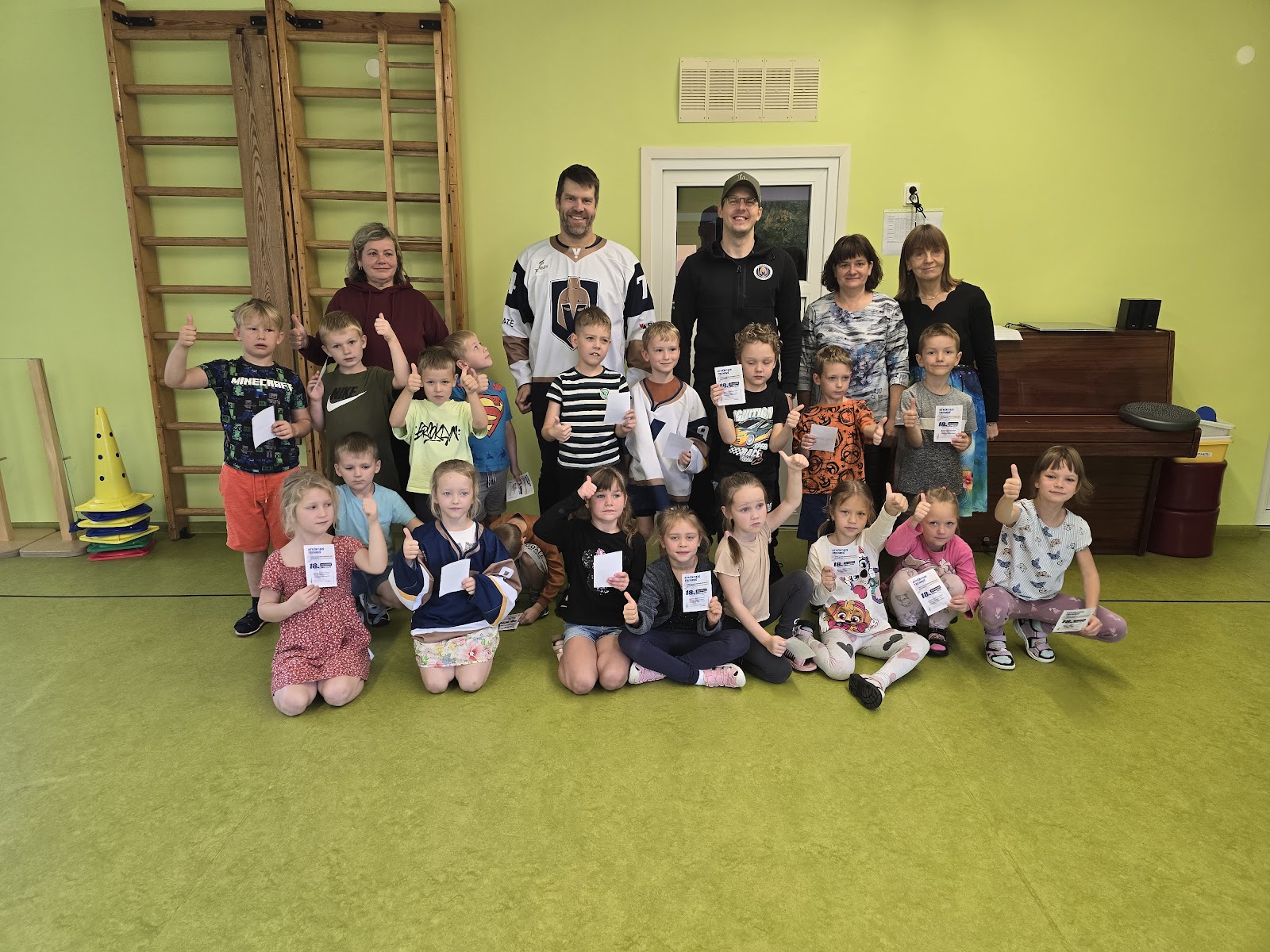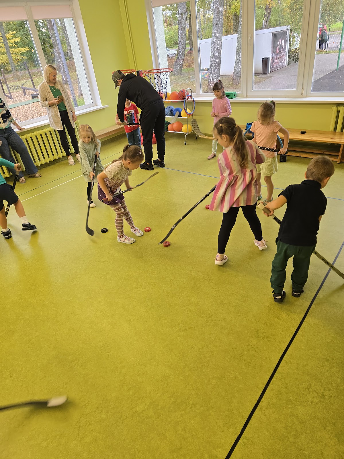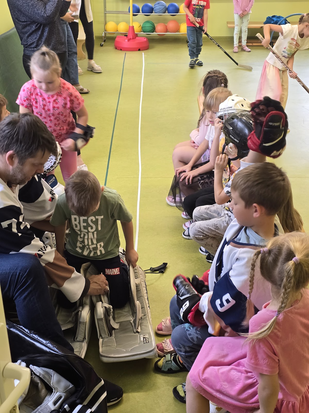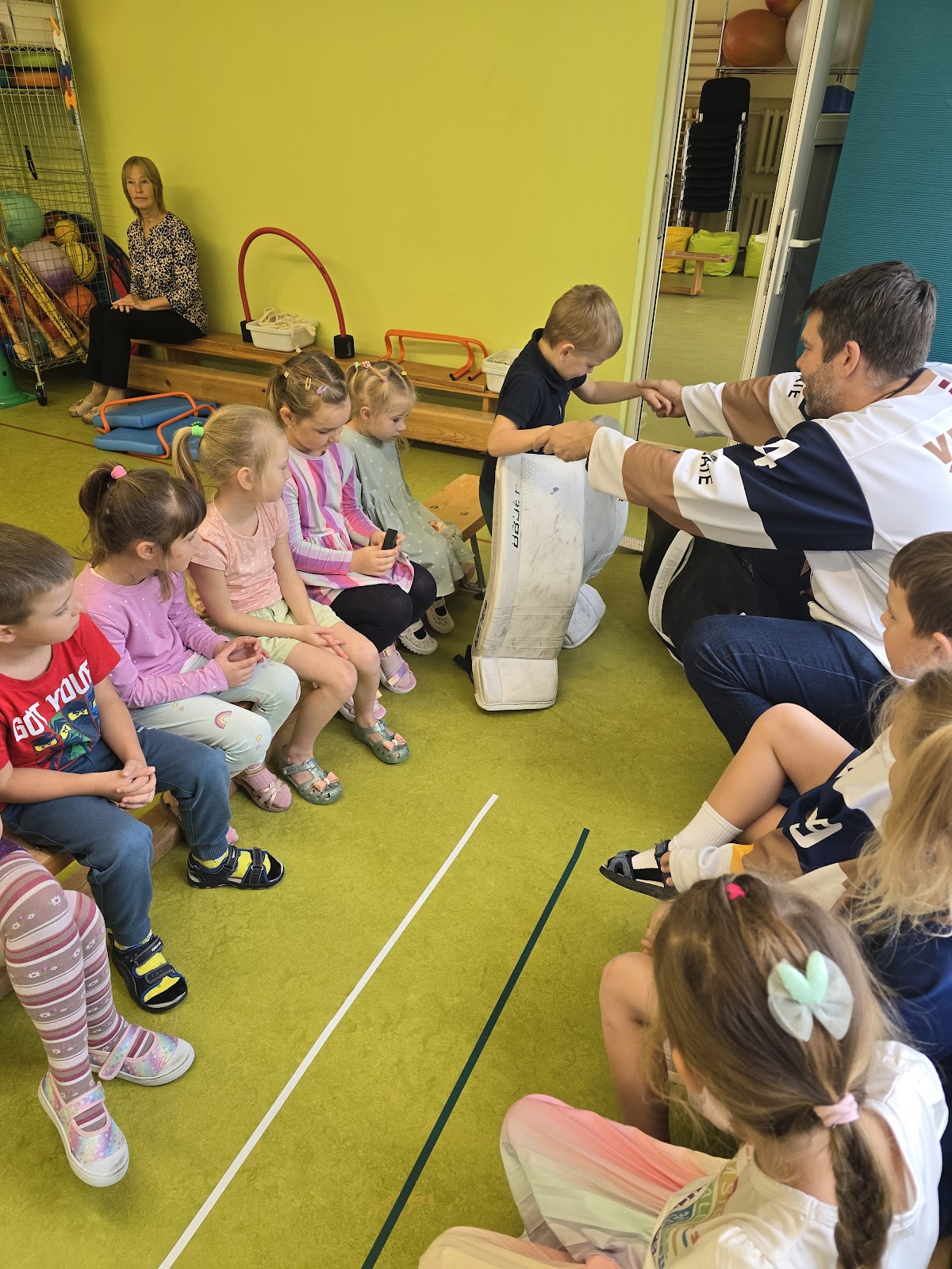 13.oktobrī, 2025, pie mums ciemojas Valmieras sporta skolas hokeja treneri Jānis Sprukts un Lauris Žagariņš. Treneri “Kamenīšu” un “Spārīšu” grupas bērniem pastāstīja kas ir hokejs, parādīja formas tērpu un aprīkojumu. Bērniem bija iespēja iemest vārtus – tie, kuri trāpīja tika pie īstas hokeja ripas.