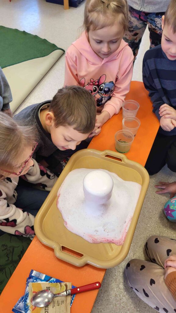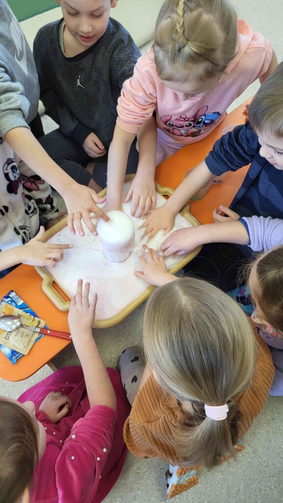 Eksperiments “Vulkāna izvirdums” – Izrādās, ka, lai redzētu vulkāna izvirdumu, nemaz nav jādodas uz citām valstīm, kur tos var redzēt! Tomēr svarīgi veicot eksperimentu ir vadīties pēc soļiem – tātad jāzin, cik daudz un kura sastāvdaļa ir jāliek pēc kārtas, lai eksperiments izdotos! Bija jautri! Zinām arī to, ka bez pieaugušā eksperimentus veikt nedrīkst, drošība pirmajā vietā!