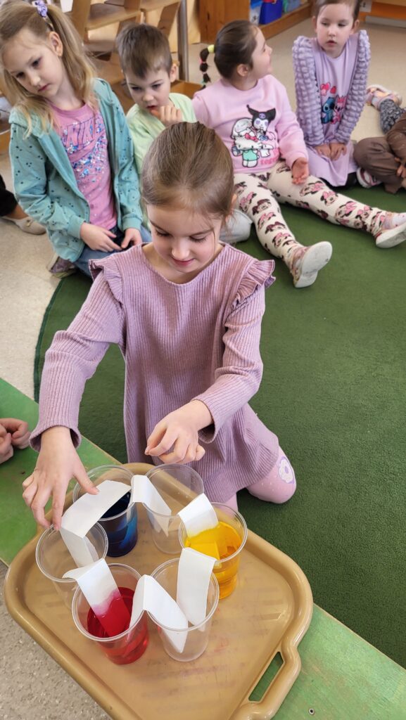Mums ļoti patīk eksperimentēt, tad nu šoreiz ķērāmies pie krāsām! Vērojām, kā no pamatkrāsām var iegūt atvasinātās krāsas. Noskaidrojām, ka iegūt pamatkrāsas sajaucot citas krāsas, nav iepējams, taču sajaucot pamatkrāsas gan varam iegūt daudz un dažādas!