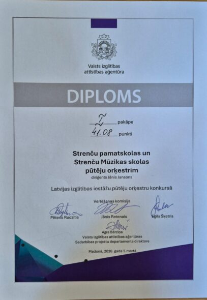 Paldies Strenču Mūzikas skolas klavierspēles 5. klases audzēknim Oliveram Vanagam un skolotājai Indrai Grietenai par pārliecinošu skolas pārstāvēšanu Valsts konkursa […]