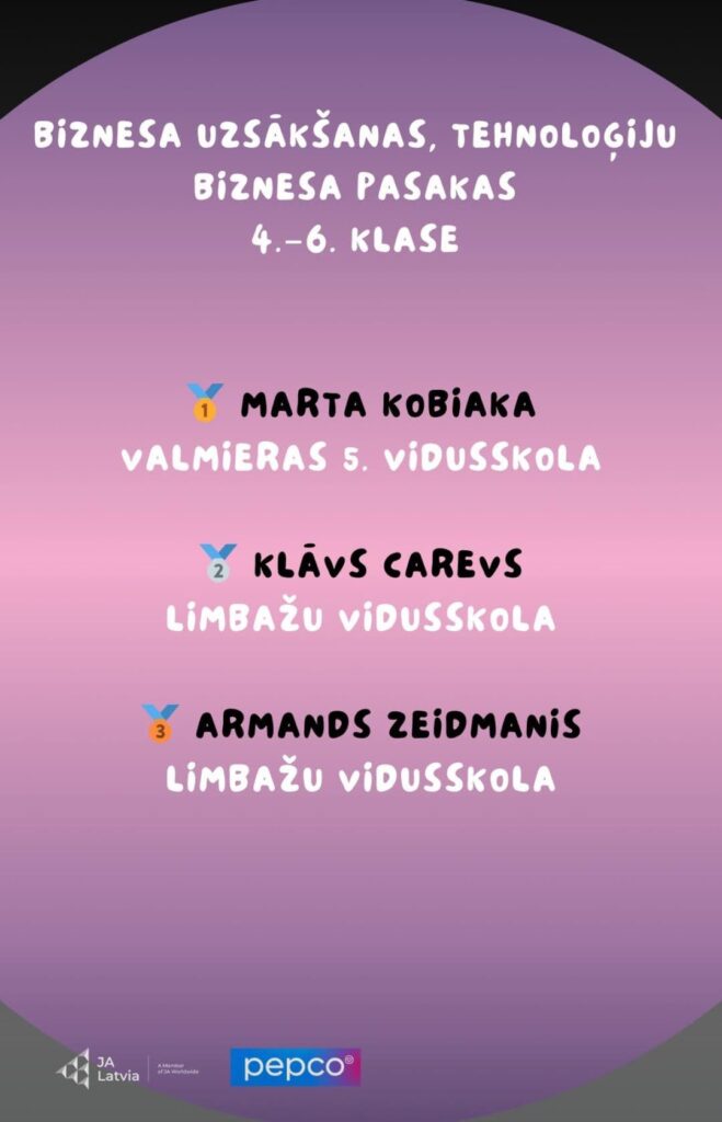 Lepojamies ar mūsu 6.a klases skolnieci Martu, kura izcīnījusi 🥇1. vietu Junior Achievement Latvia Biznesa pasaku konkursā 4.–6. klašu grupā! 📚