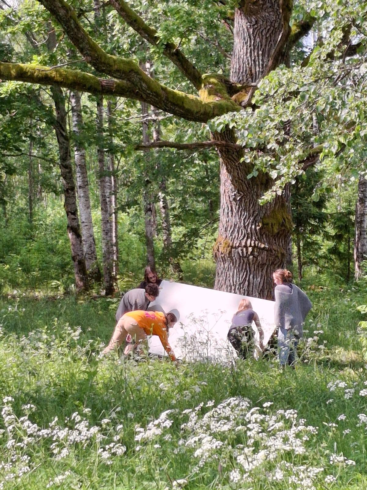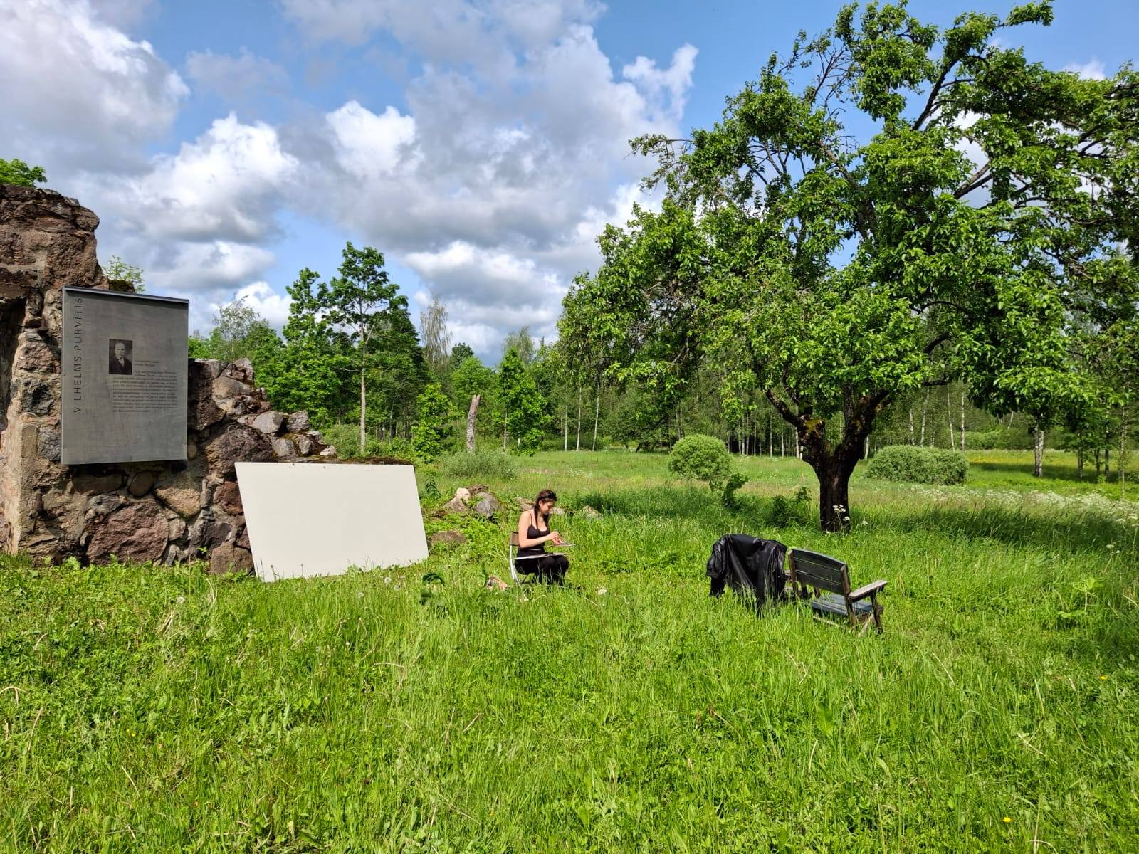 “Saule, lietus, dubļi, vējš, mušas, odi, nātres… Tik daudz elementu diskomfortam! Un tomēr, radošais gars dzirkstī un sprēgā, jo apkārt ir neskarta savvaļas (varbūt nedaudz) daba, draudzīga gaisotne un visam pāri mērķis realizēt savu ieceri, kuru iedvesmo…