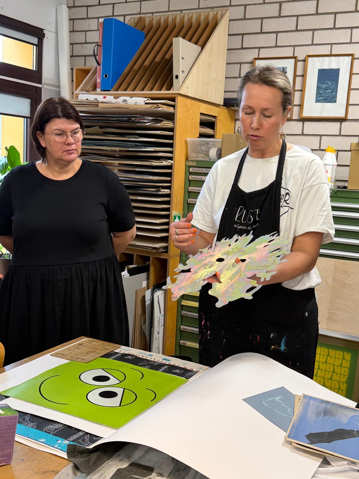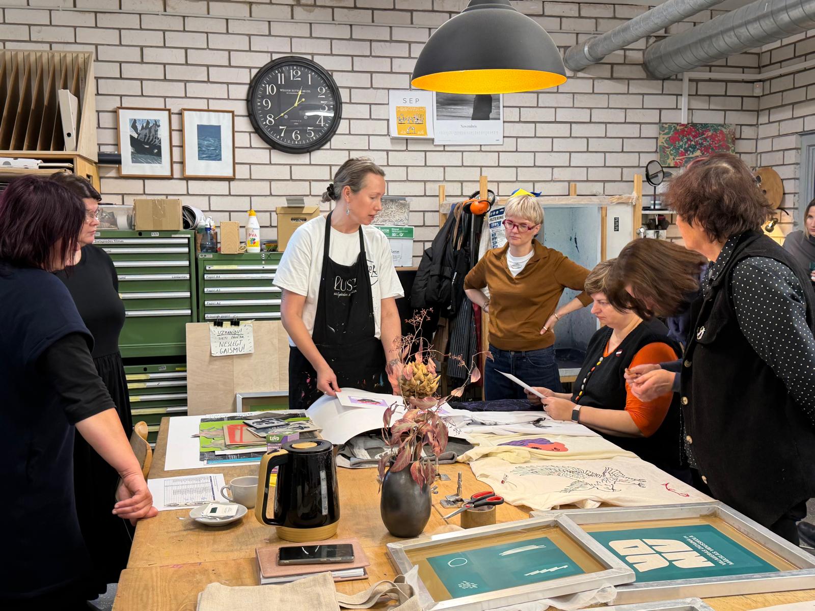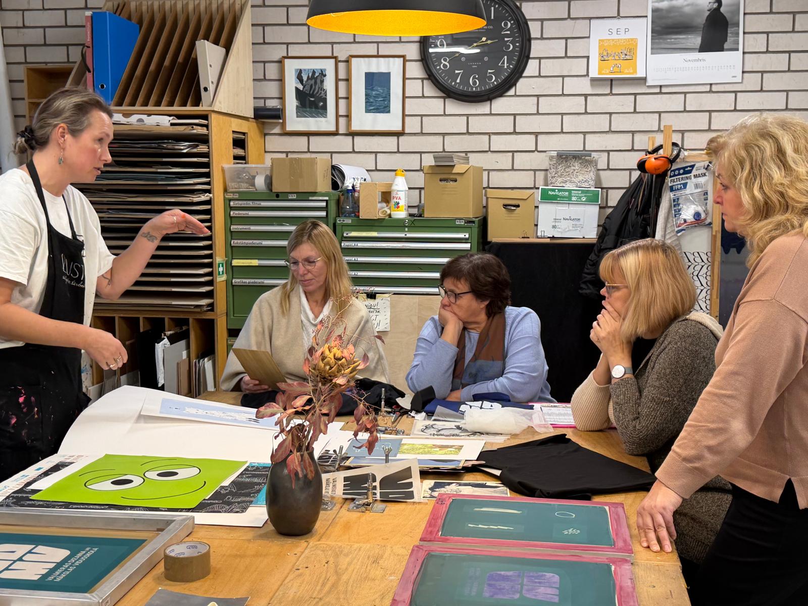 Notika arī sarunas par to, kā sietspiedes tehnika var bagātināt mācību procesu un kā veidot piemērotu darbnīcu vidi.