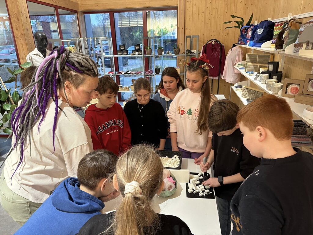 Ar ziedojumu atbalstījām centra darbību, pretī saņemot radošas aktivitātes – ziepju liešanu un vēja zvanu meistarklasi, kā arī iepazināmies ar centra apmeklētājiem un viņu ikdienas darbiem.