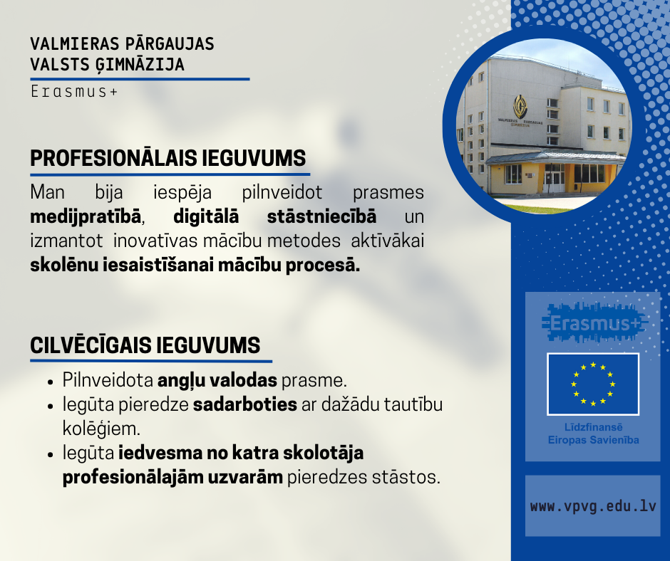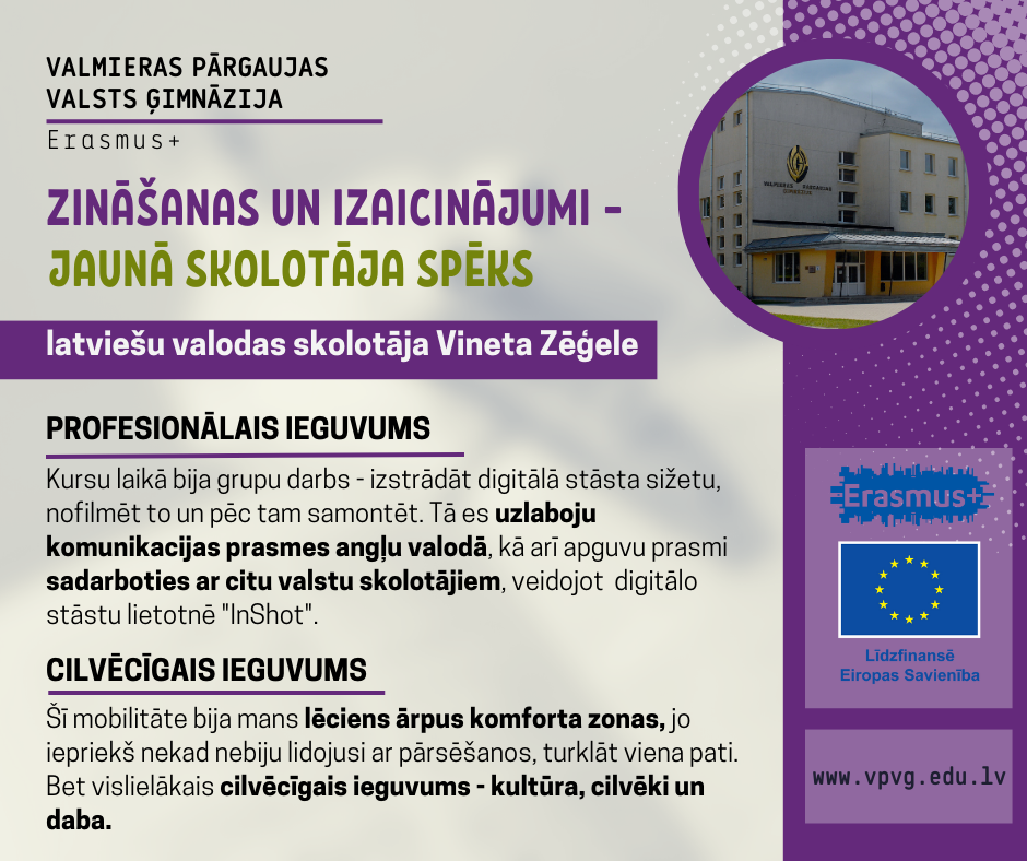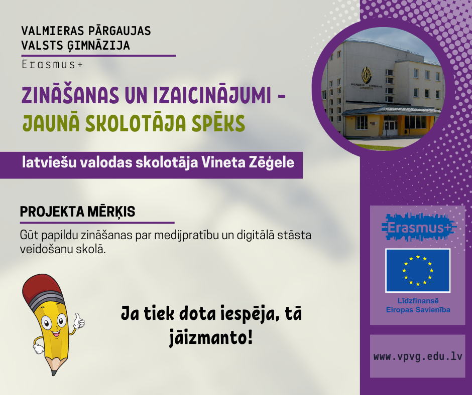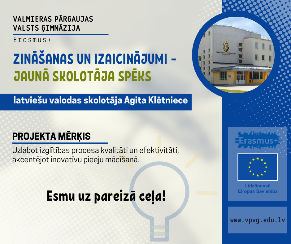 ERASMUS + projekts ‘’Zināšanas un izaicinājumi – jaunā skolotāja spēks’’/ Knowledge and challenges – the strenght of the young teacher