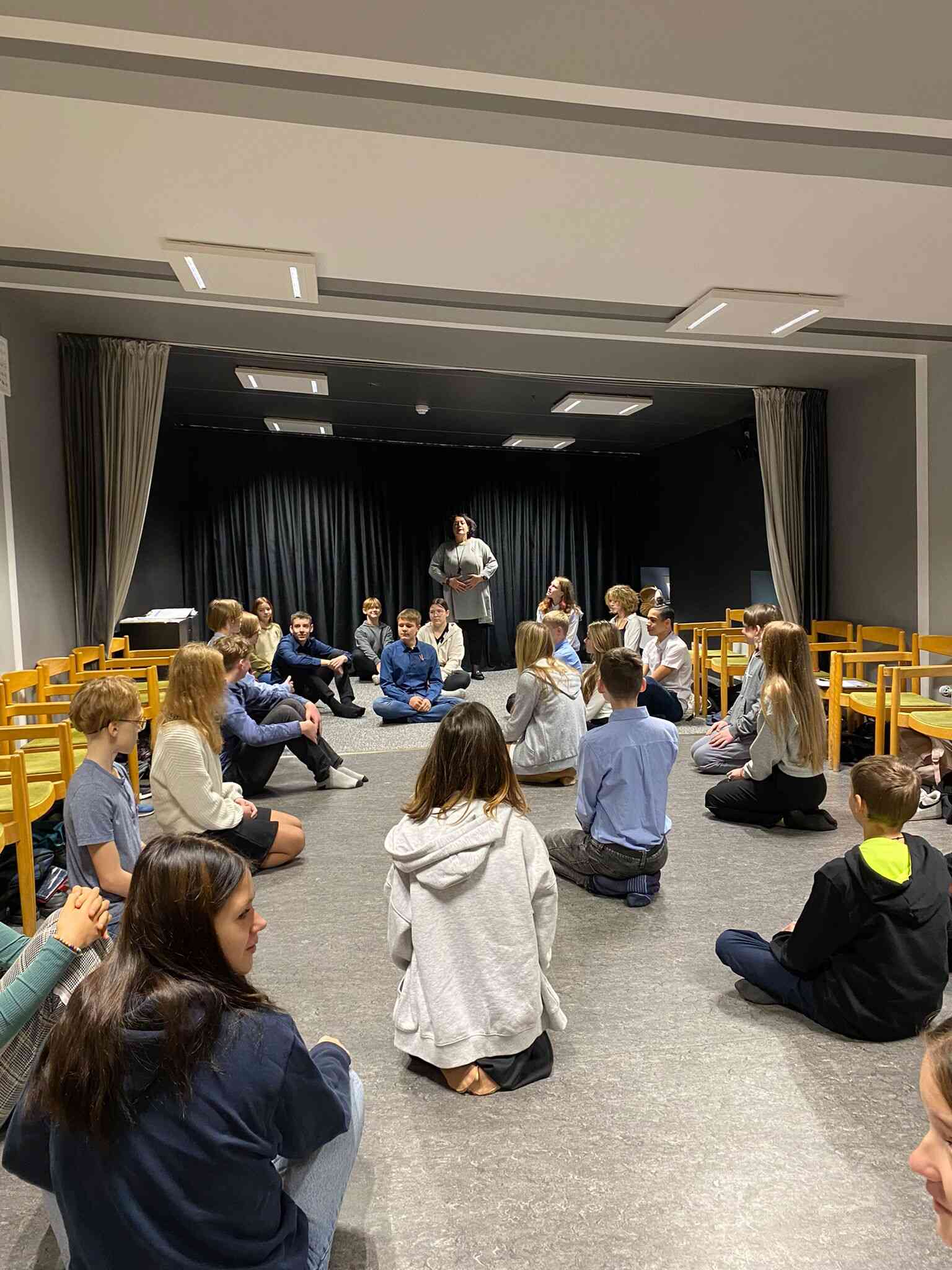 Projektu noslēdzām ar kopīgu vakaru skolas svinību zālē, kur skolēni stāstīja par saviem iespaidiem Latvijā, kopīgi dejoja, skatījās fotoprezentāciju un pārbaudīja savas zināšanas viktorīnās par Vāciju un Latviju.